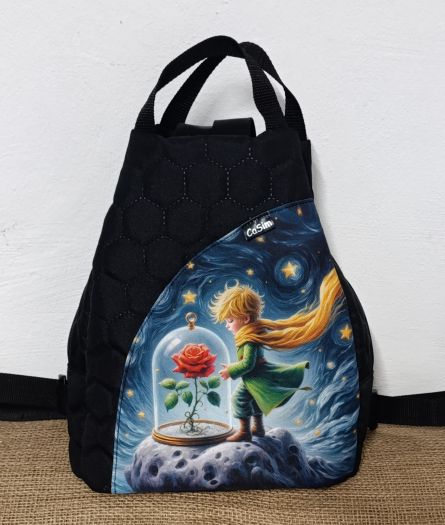 Batoh je ušitý z kočárkoviny,( vodě odolný materiál), podšívka je z bavlněné látky.